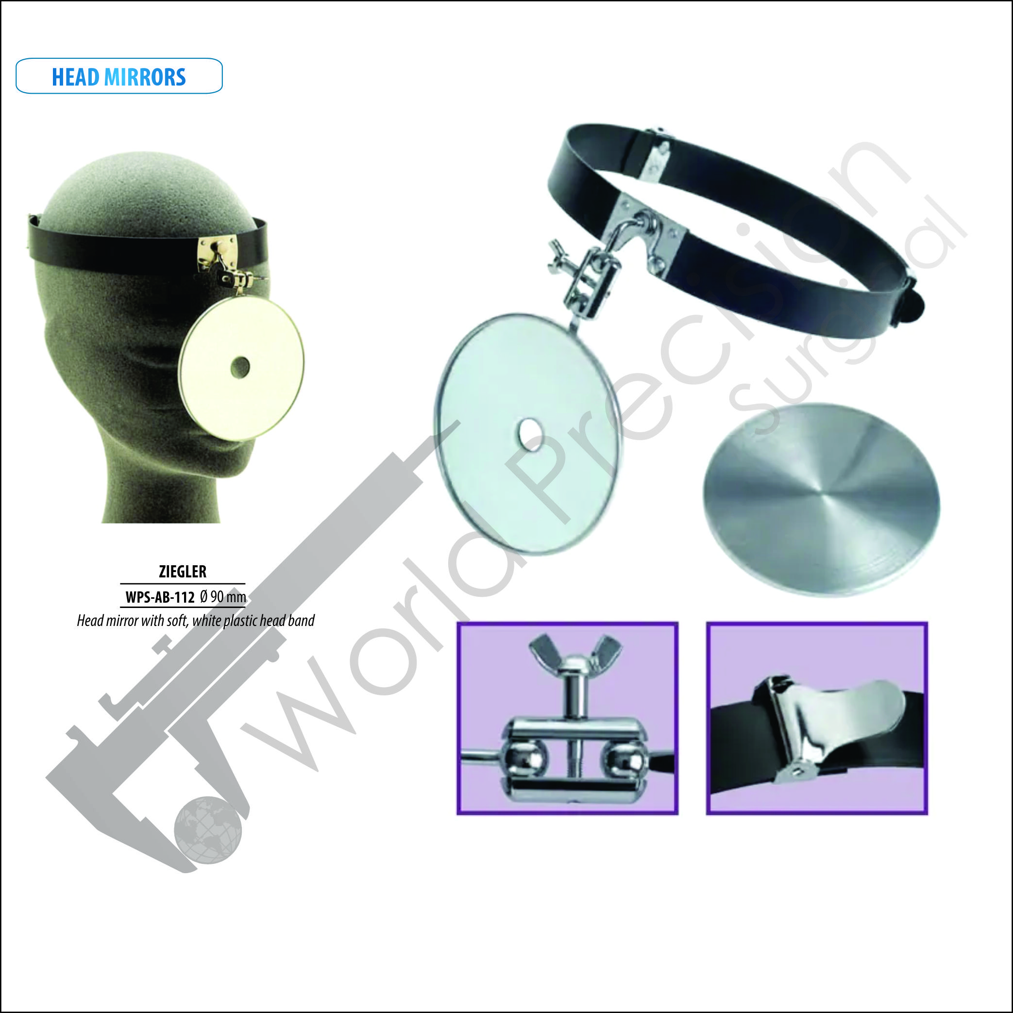 Ziegler Head Mirror With White Plastic Head Band 90MM