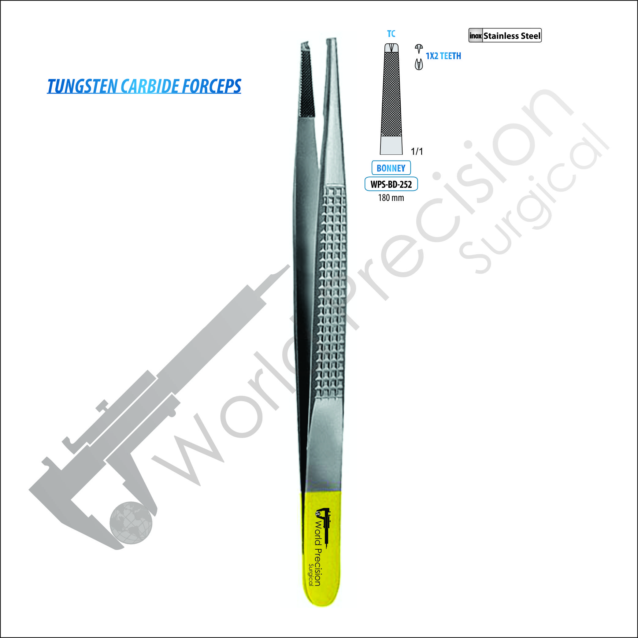 TISSUE FORCEPS BONNEY 1 X 2 TEETH ,* TC * , 180 MM