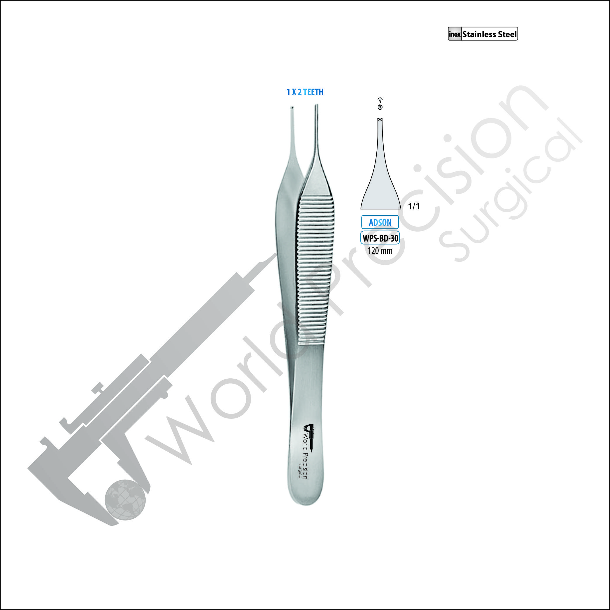 FORCEPS ADSON TEETH 1 X 2 120MM