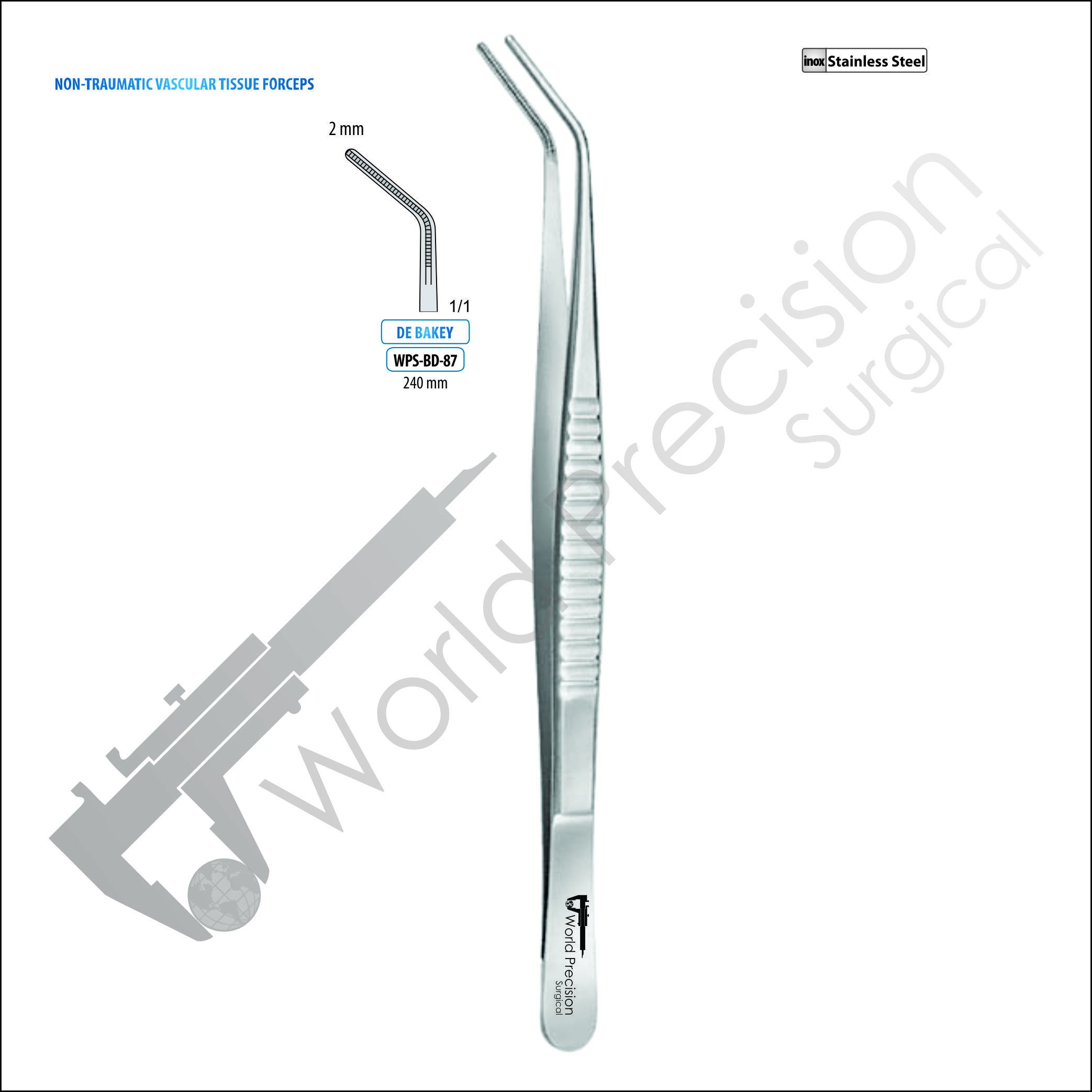 FORCEPS DE BAKEY, CURVED, 2 MM, 240MM