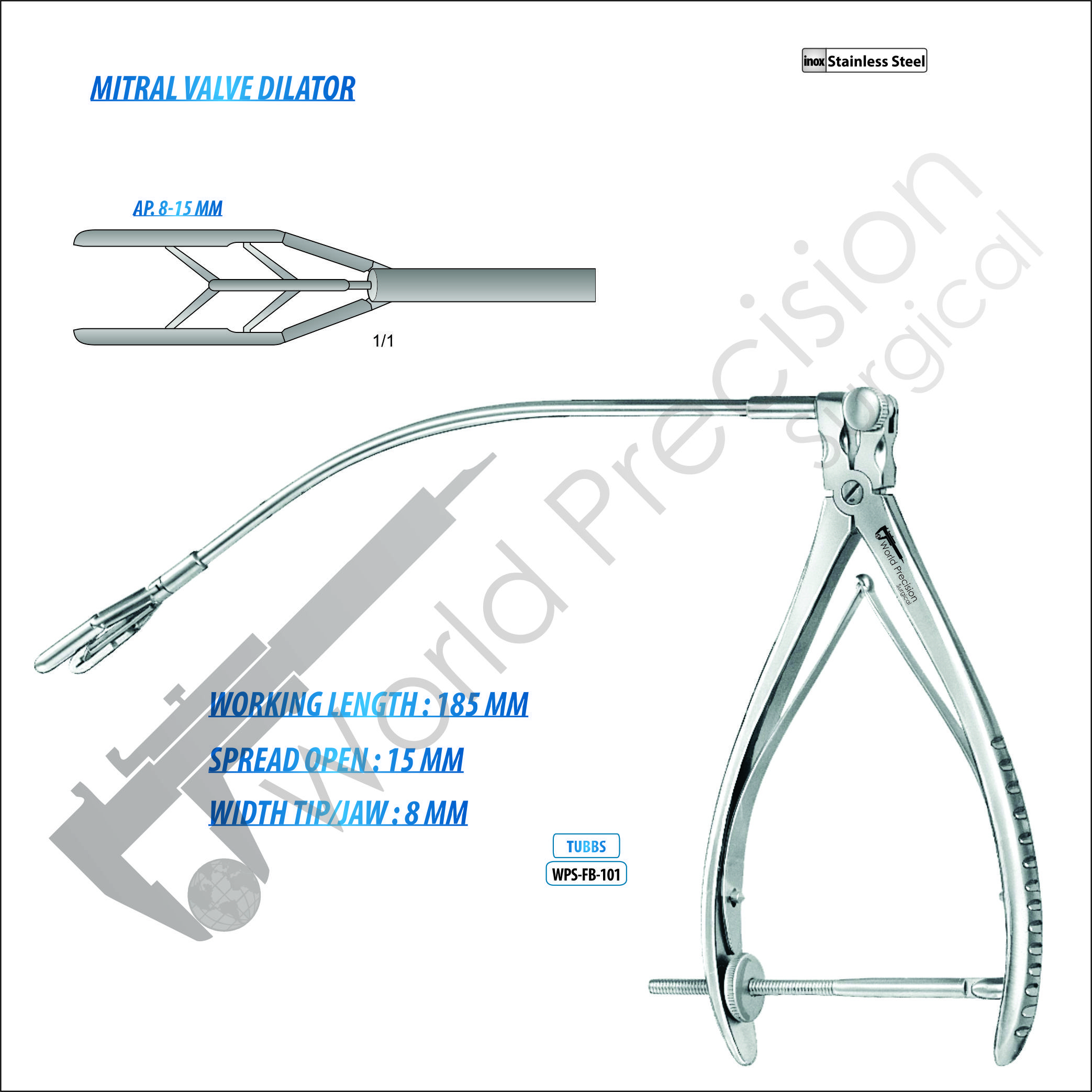 MITRAL VALVE DILATOR TUBBS AP. 8 – 15 MM , 185 MM