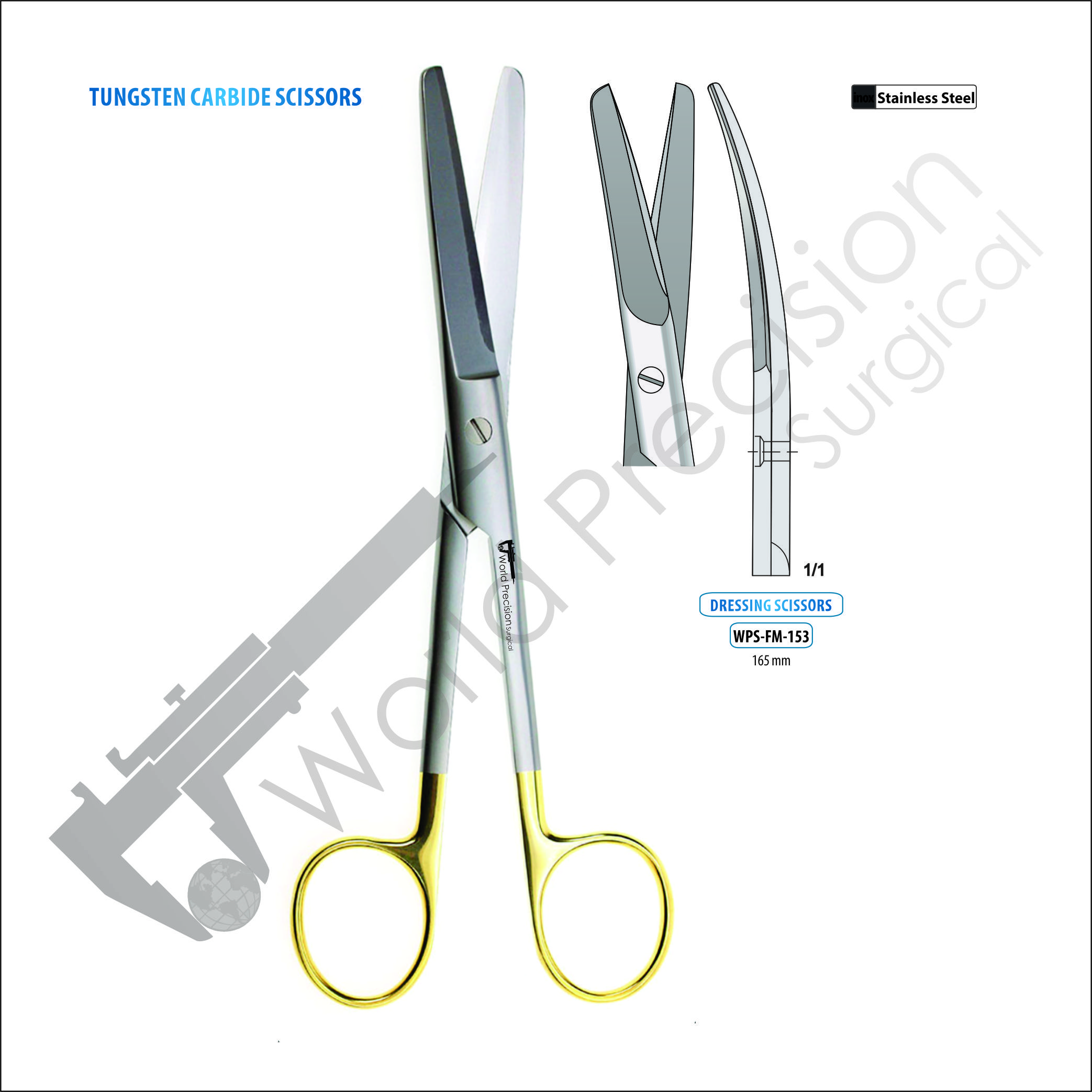SCISSORS OPERATING STANDRAD BLUNT/BLUNT-CURVED, TC, 165 MM