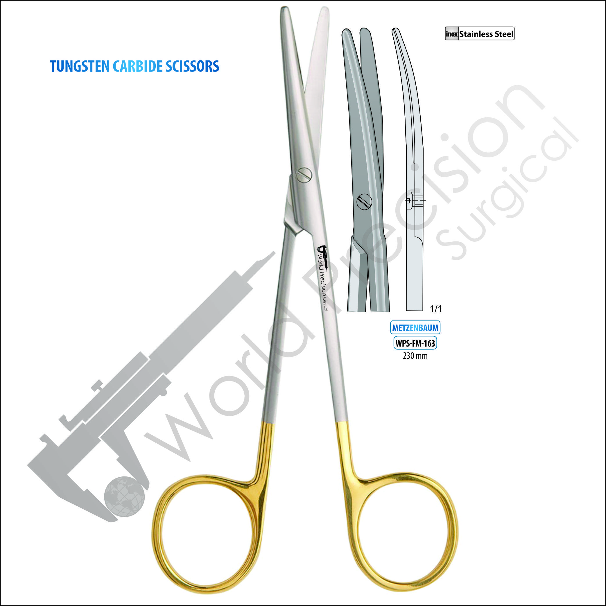 SCISSORS METZENBAUM-CURVED, TC, 230 MM