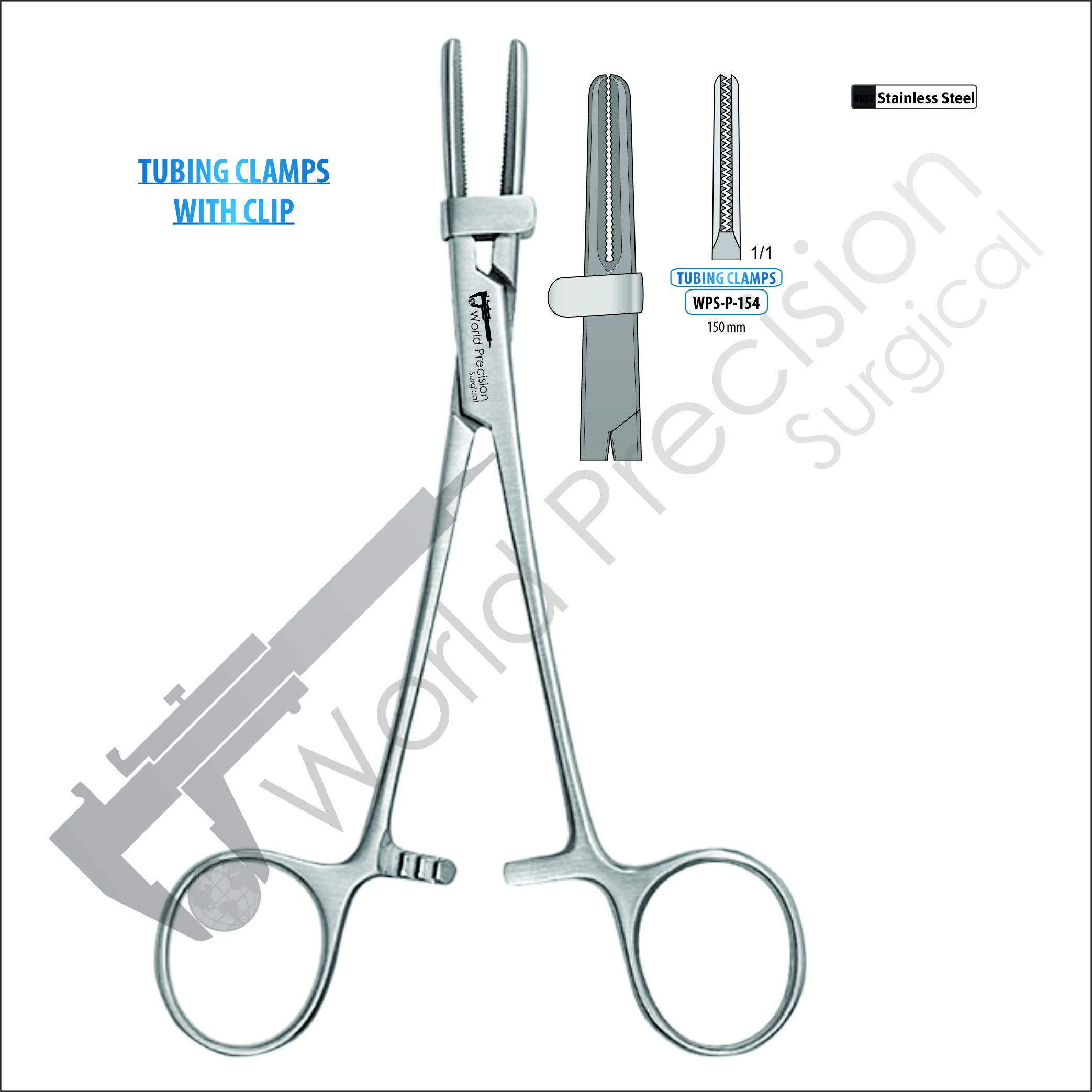 TUBING CLAMPS FORCEPS WITH CLIPS 150 MM