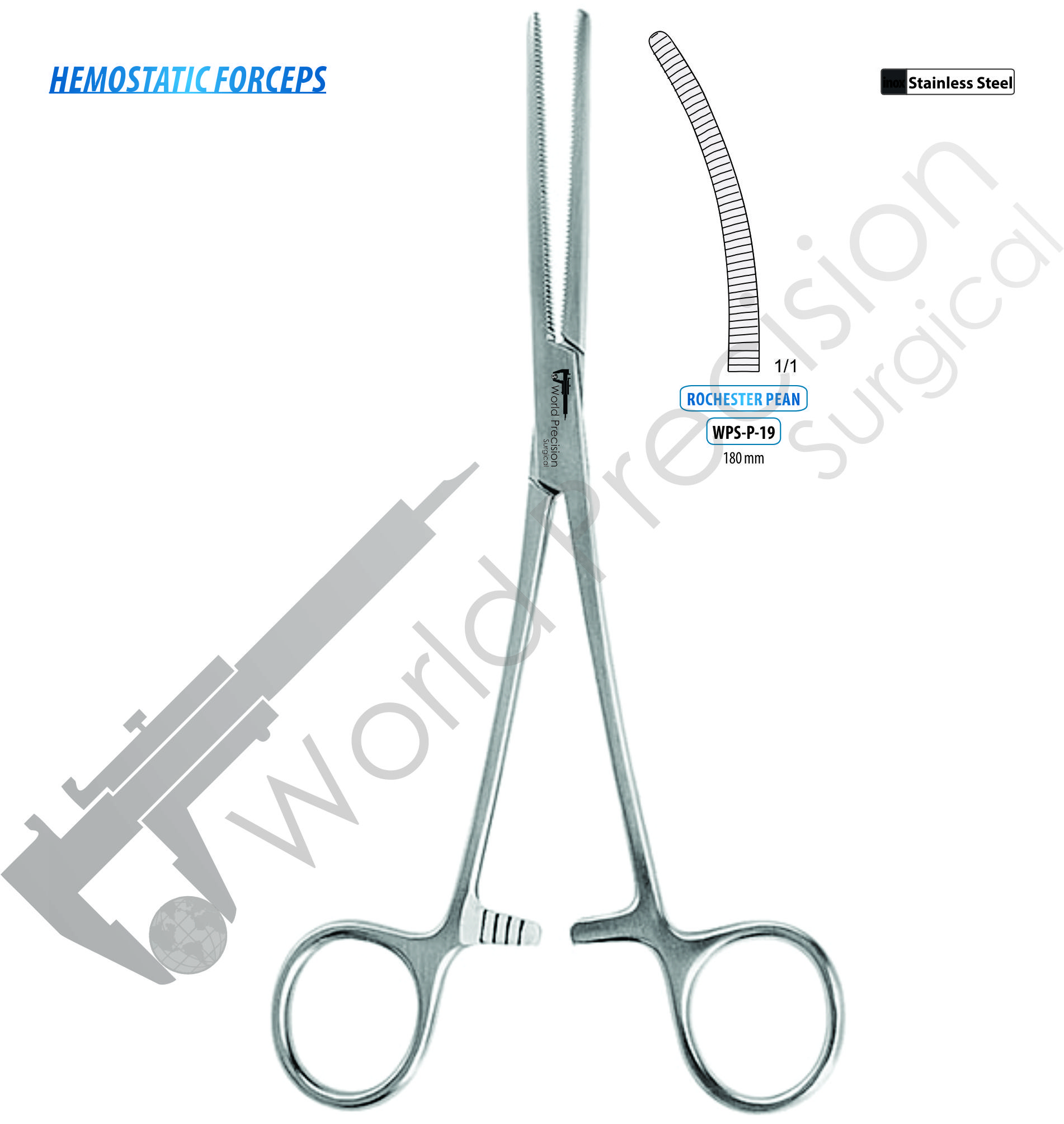 HEMOSTATIC FORCEPS ROCHESTER-PEAN , CURVED 180 MM
