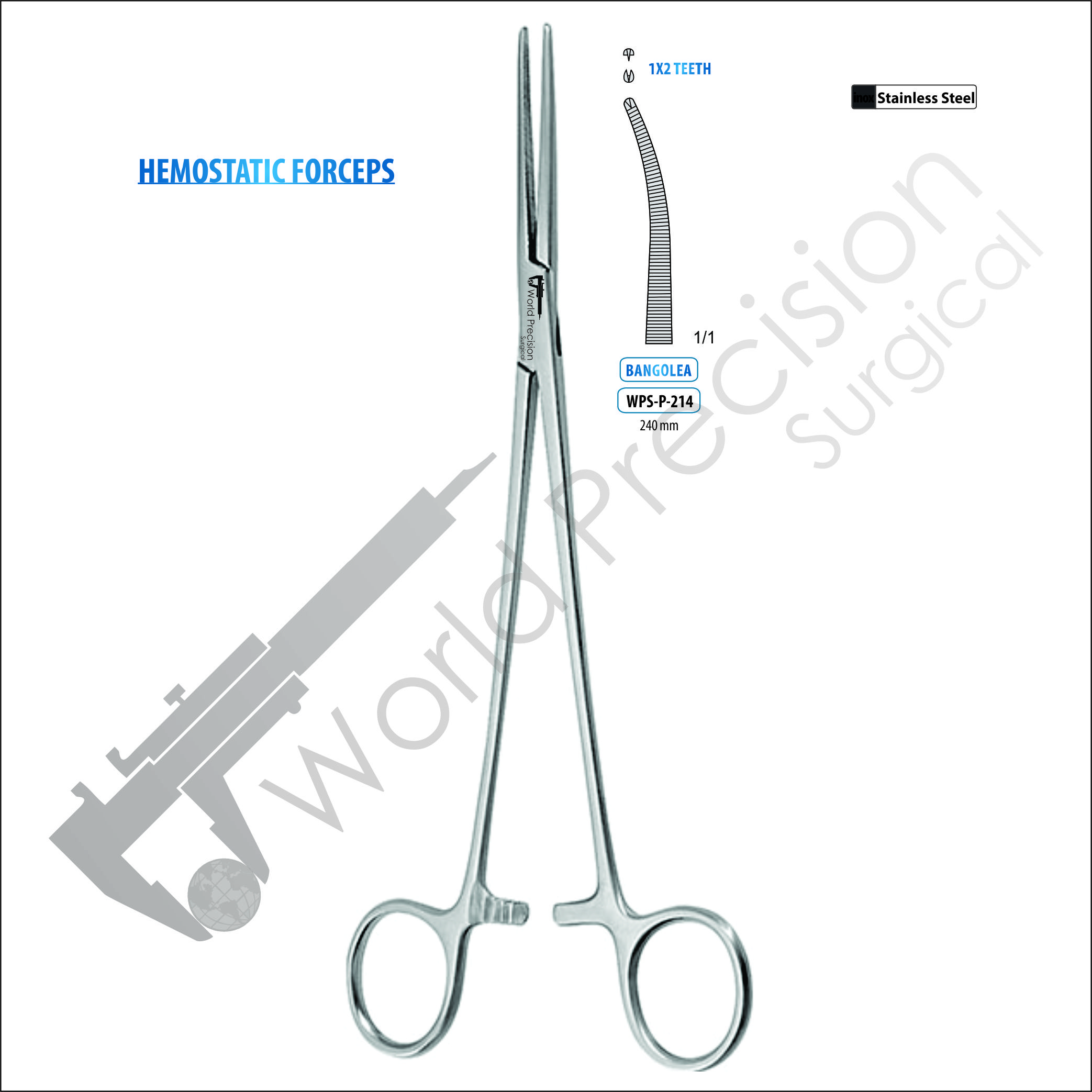 HEMOSTATIC FORCPES BENGOLEA 1X2 TEETH , CURVED 240 MM