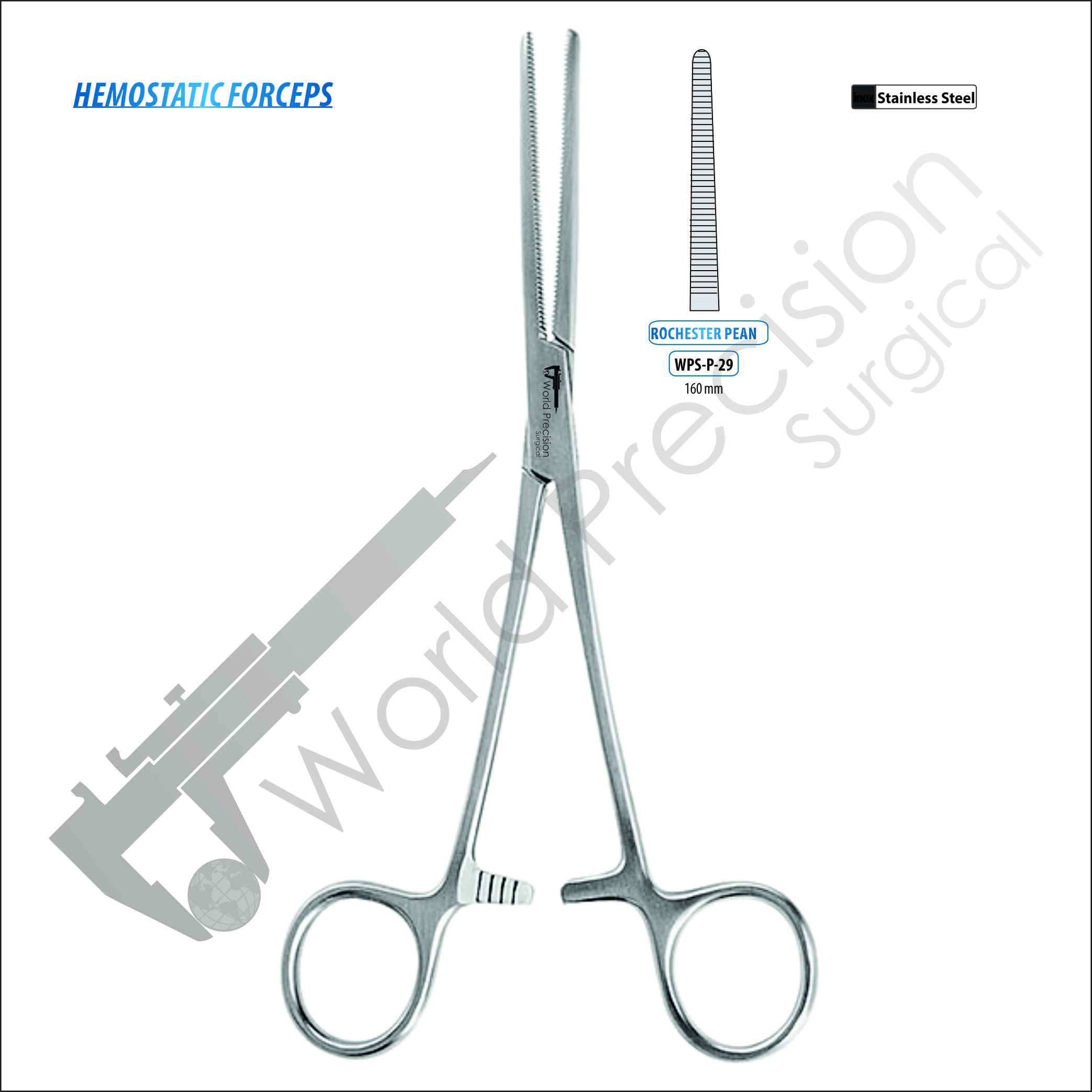 HEMOSTATIC FORCEPS ROCHESTER-PEAN , STRAIGHT 160 MM